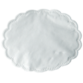 Hvitt koppunderlag laget av papir til kaffekopper, boller, kaker etc. Diameter: 9 cm.