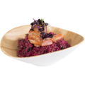 Oval skål ur serien Bamboo i bambuimitation från APS. Tillverkad i melamin och lämpar sig utmärkt för att presentera smårätter i eller tillbehör.