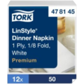 Vita LinStyle® papirservietter fra Tork. Fantastisk myk serviett med utseende og følelse av tekstil. Perfekt for restauranter som foretrekker tykkere engangsservietter av eksklusiv kvalitet.