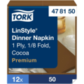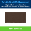 Kakaofargede LinStyle® papirservietter fra Tork. Myke, tykke middagsservietter med god absorpsjon. Ferdigbrettede servietter av førsteklasses kvalitet som ser og føles ut som tekstil.