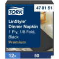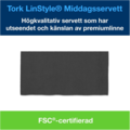 Sorte LinStyle® papirservietter fra Tork. Myke, tykke middagsservietter med god absorpsjon. Ferdigbrettede servietter av førsteklasses kvalitet som ser og føles ut som tekstil.