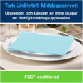 • Lyseblå LinStyle® papirservietter fra Tork. Myke middagsservietter som ser og føles ut som tekstil. Serviettene er myke og tykke med ekstra god absorpsjon.