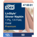 Koralfargede LinStyle® papirservietter fra Tork. Myke middagsservietter som ser og føles ut som tekstil. Serviettene er myke og tykke med ekstra god absorpsjon.