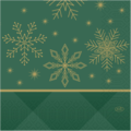 Serviett Rhombus Green 33x33 cm* er en grønn 3-lags serviett med gyldne snøfnugg som dekor fra Duni. En serviett som hever borddekkingen på ethvert julebord.