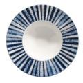 Djup tallrik 28cm ur serien Mistral från Bonna. En vit tallrik med blå ränder som skapar härliga strålar kring det som serveras i. Passar till servering av bl a pasta och sallader.