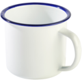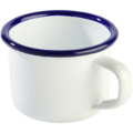 Mugg med öra i vit emaljerat stål med blå dekorrand runt kanten ur serien Enamelware från APS. Muggen passar utmärkt att servera kaffe eller te ur.