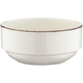 Rund skål fra Retro-serien til Bonna. En porselensserie preget av sin elfenbenshvite nyanse som er vakkert kombinert med en håndmalt rustikk dekorstripe. Bowl Joker er ideell for tilbehør og supper.
