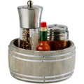 Serveringstønne fra APS med en vakker tredesign og detaljer i rustfritt stål. Perfekt å sette frem på bordene og eksponere krydder, sauser og bestikk på en morsom og annerledes måte.