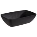 Rektangulær skål i svart farge fra serien Friendly fra APS er laget av melamin. Denne skålen er både holdbar og sikker å bruke, perfekt for ulike formål og serveringstilfeller.