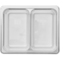 Kantin fra Exxent. Den klare to-delte kantinen i polykarbonat er utformet med fokus på å forenkle arbeidsprosessen. Kantinen er lett å rengjøre og robust nok til å tåle krevende kjøkkenmiljøer. Den er ideell for buffeer, catering og à la carte-restauranter, der fleksibilitet og holdbarhet er viktig. Fungerer utmerket både for servering og oppbevaring.