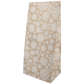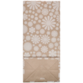 Brune SOS-poser (Self Opening Sack) med blomsterdesign, laget av kraftpapir. Posene er primært laget for å pakke blomster og potteplanter.
