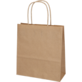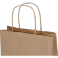 En stilren brun papirpose med tvinnede håndtak, laget av brunt kraftpapir. Med sine mindre mål er den perfekt som gavepose, goodie bag eller for mindre produkter i butikkmiljø.