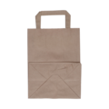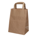 Brune papirposer med flate håndtak laget av ubleket kraftpapir. Posene passer godt til Hot & Cold serien og andre take away løsninger du finner hos oss.