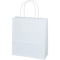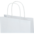 Hvit papirpose med tvinnede hvite håndtak, laget av hvitt kraftpapir. Mindre papirposer som er perfekte som gavepose eller goodie bag.