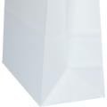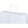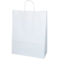 Hvit papirpose med tvinnede hvite håndtak, laget av hvitt kraftpapir.