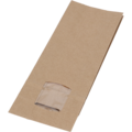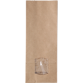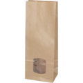 Brune papirposer med firkantet bunn, vindu nederst på fremsiden og PE-belegg på innsiden. Posen er laget av ribbet kraftpapir og PE-plast. Vinduet gjør det enkelt for kundene å se innholdet.