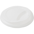 Plastlock Sweet Vit i CPLA från Duni. Med detta lock blir det enklare att ta med take away drycken, minskar risken för spill och håller drycken varm lite längre. Passar till Pappersmugg Bagasse 350 ml.