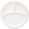 Bagassetallerken 26 cm med 3 rom i hvit farge er en engangstallerken laget av PFAS-FRI bagasse, et plantebasert materiale fra fornybar råvare. Et utmerket miljøvennlig engangsalternativ!