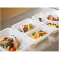 Hvit caterline-form. Mål: 227x178x50 mm. Volum: 1345 ml.