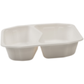 Hvite 2-roms HMR-støpeformer til systemet Duniform – forseglbare former til ferdiglagde matretter. Volum: 540/440ml. Mål: 215x148x50 mm.