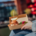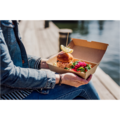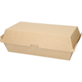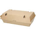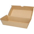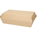 Brun avlang take-away boks Well4Food laget av papp. Utmerket matemballasje for gatekjøkken, salatbarer og andre serveringssteder som gir kundene mulighet til å ta med kald og varm mat videre.