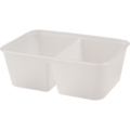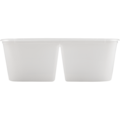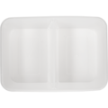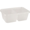 Gjennomsiktig rektangulær mikroform/beholder av god kvalitet som kan brukes til både kald og varm mat. Volum: 375+375 ml. Mål: 17,5x12x6,1 cm.