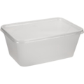 Gjennomsiktig rektangulær mikroform av høy kvalitet som kan brukes til både kald og varm mat. Volum: 95cl. Mål: 175x120x70mm.