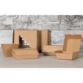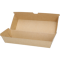 Brun avlang take-away boks laget av papp. Utmerket matemballasje for gatekjøkken, salatbarer og andre serveringssteder som gir kundene mulighet til å ta med kald og varm mat videre.