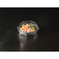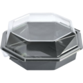 Grå 8-kantede salatbokser med transparent hengslet lokk. Egnet for kald mat som salater med mer.