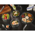 Sorte 8-kantede salatbokser med gjennomsiktig lokk. Perfekte for kalde retter som salater og mye mer.