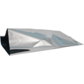 Sølvfarget foliepose med åpning på den ene kortsiden. Posen stenges og forsegles med et gavebånd, en etikett eller taperemse av eget valg.