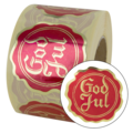 Rull med selvklebende God Jul etiketter som kan brukes når du skal gi bort en gave til noen du er glad i.