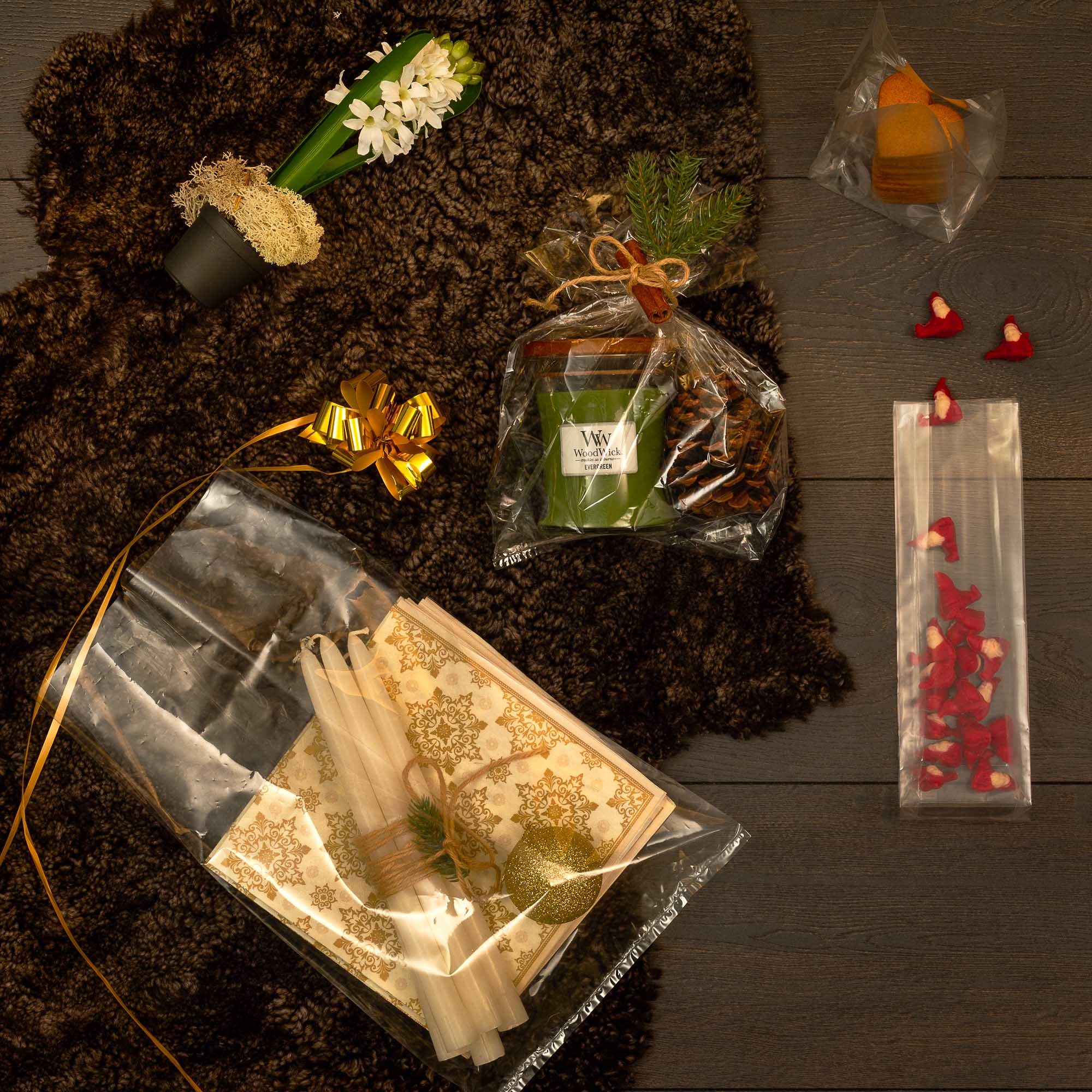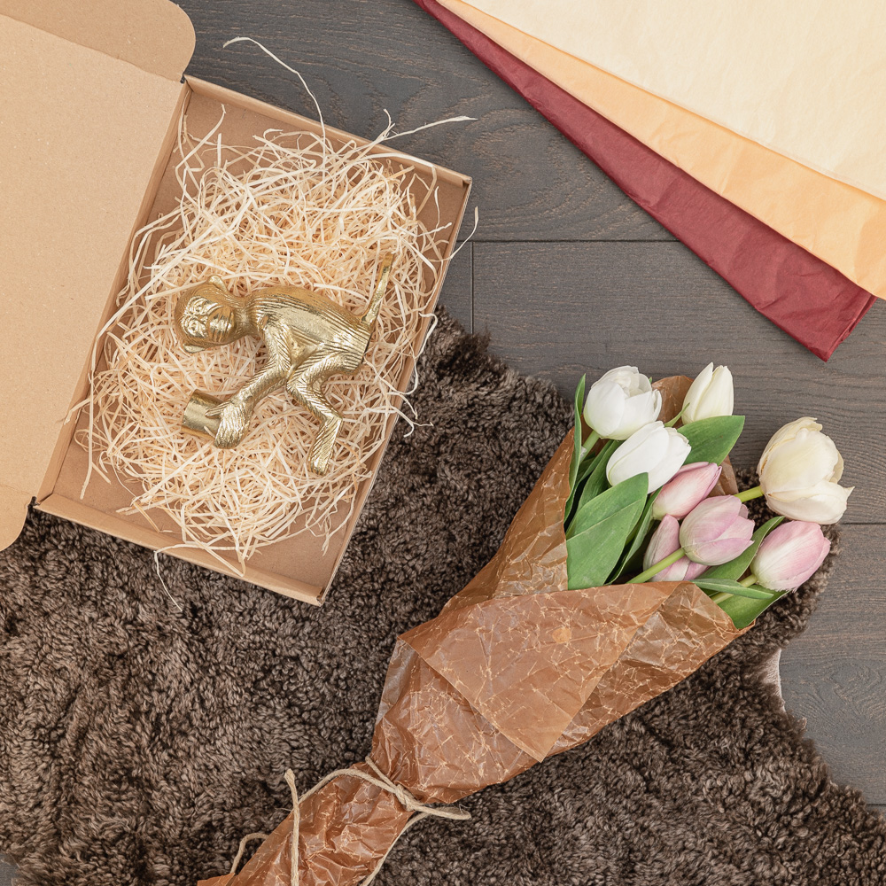 Hva er vel en julegave uten et kreativt eller fargerikt innslag? Julen er en høytid som tillater oss å bruke litt ekstra tid på vise kjærlighet og omtanke, også når det kommer til gavene som skal pakkes inn og deles ut. En kjedelig og nøytral julegave kan forvandles til julens Askepott med hjelp av fargerike gavebånd, livlige hengeetiketter, håndplukket granris, tekstilbånd og cellofan– Vi har et bredt utvalg av juleinspirert emballasje og mengder av julegavepapir i forskjellige mønster og størrelser, gavebånd i utallige farger og former, jutegarn, rosetter, samt bølgepapp og kartonger som beskytter gaven under transport.