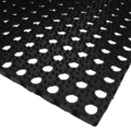 Ringgummimatte er en slitesterk og praktisk skrapematte som effektivt fjerner grov smuss samtidig som den gir et sklisikkert underlag. Den åpne ringkonstruksjonen lar smuss og fukt passere gjennom, mens knotter på baksiden holder matten på plass.