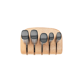 Knivblokk i tre med 5 kniver fra serien Profile fra Brabantia. De har et sømløst grep, er lette å rengjøre og hygieniske å bruke. Organiser og skjær i ett.