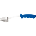 Fiskfjällare med blått plasthandtag.