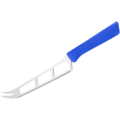 Ferskostkniv 15 cm med blått håndtak fra tyske Johannes Giesser. Bølgetannet modell med hull for å hindre at osten fester seg. Bladet er laget av høykvalitets polert stål for best mulig rustmotstand, og håndtaket er ergonomisk og sklisikkert.
