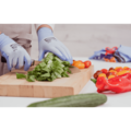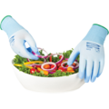 Matgodkjente monteringshansker med vannbasert PU-belegg. Skal ikke brukes i direkte kontakt med varme, fete matvarer. Etter en maskinvask er de imidlertid godkjent for bruk med alle typer mat.