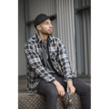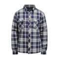 Quiltfôret skjorte med trykknapper i metall. Gjennomvevd flanell garanterer fargeektehet. To brystlommer med klaff og trykknapp, venstre med pennelomme.
