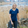 T-skjorte laget av Fairtrade-sertifisert bomull med elastisk passform. Stilig v-hals nakke og fin damepassform.