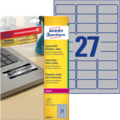Slitesterke sølvetiketter fra Avery for innendørs- og utendørsbruk er både holdbare og vakre, noe som gjør at etikettene passer godt for permanent merking av IT-utstyr, mobile enheter og maskiner. De kan også brukes til vakker merking av brosjyrer m.m. Etikettene er laget av rivesterk polyester som tåler betydelig mer enn vanlige papir etiketter. De tåler olje, smuss, vann, fukt, UV-stråling og temperaturer fra -40 °C til +150 °C.