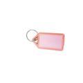 Transparent oransjefarget nøkkelbrikke i PP-plast, med etikettholder utstyrt med vindu og etikett.