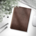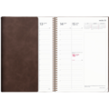 Business Kalender A5 2026 fra Burde er en myk spiralbundet kalender i brun kunstskinn med en praktisk flik som kan brukes som bokmerke. Kalenderen viser en uke per oppslag, slik at du enkelt får oversikt over hele uken.
