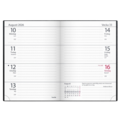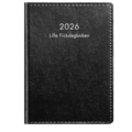 Kalender Lille Lommebok i svart kunstskinn med en uke per oppslag. Innhold: Kirkelige høytider, flaggdager, helligdager/aftener, månefaser, navnedager, oversikt over internasjonale høytider, merkedager/hendelser, årsoversikt(er), årsplan(er), atlas, telefonregister.