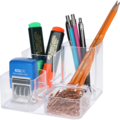Pennställ med 4 fack i olika höjd för praktisk förvaring av pennor, linjaler, gem etc. Stilren design som passar de flesta kontor.
