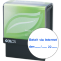 En praktisk stempel med teksten "BETALT VIA INTERNET" laget av minst 65% resirkulert materiale. Den leveres med en blå blekkpatron. Indeksen er stor, slik at du enkelt kan se hvor du stempler.