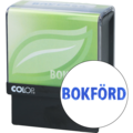 En praktisk stempel med teksten "BOKFØRT" laget av minst 65% resirkulert materiale. Den leveres med en blå blekkpatron. Indeksen er stor, slik at du enkelt kan se hvor du stempler.