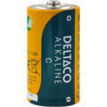 Alkalisk batteri C (LR14) fra Deltaco. Batteriet egner seg for bruk i lommelykter, bærbare radioer og elektroniske leker.