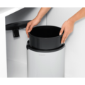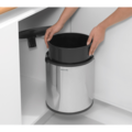 Hink för bänkskåp 15 L från Brabantia. Det här inbyggda avfallskärlet är dold i bänkskåpet och locket slås upp automatiskt när dörren öppnas.