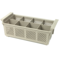 Bestikkurv med 8-rom for oppvask av stående bestikk . Oppvasken får best resultat i oppmaskinen når bestikket vaskes ferdig sortert, og med håndtakene ned.